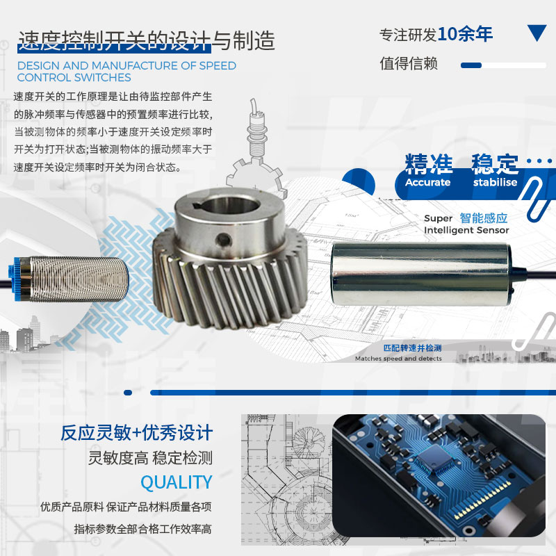 凱基特速度控制開關(guān)產(chǎn)品主要針對(duì)客戶現(xiàn)場的實(shí)際需求而研制,產(chǎn)品用電范圍廣泛。產(chǎn)品對(duì)電機(jī)及機(jī)械傳動(dòng)裝置常出現(xiàn)的堵轉(zhuǎn)、卡轉(zhuǎn)、超載、慢轉(zhuǎn),皮帶打滑、傳動(dòng)鏈(帶)脫落、傳動(dòng)軸斷裂等電氣及工藝出現(xiàn)的故障均能有效及時(shí)的處理。可起到保障生產(chǎn),維護(hù)設(shè)備的作用。
