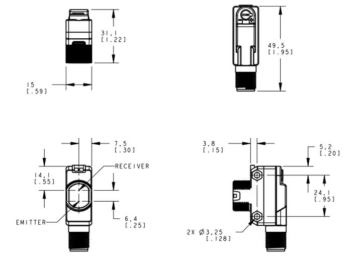 • ·:通用外殼,18毫米螺紋圓柱安裝或者側(cè)面安裝